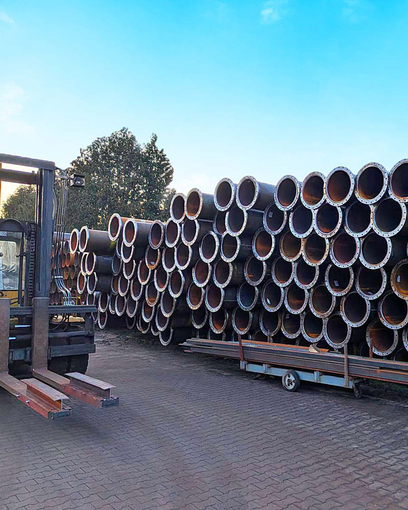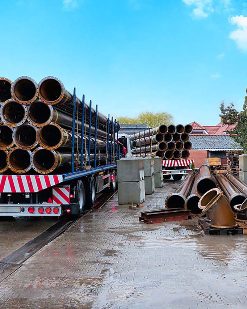Zum Einsatz kamen dabei sogenannte Spülrohre in der Dimension DN 500. Für unseren Kunden haben wir mehrere wichtige Schritte übernommen. Von der Materiallieferung über die Fertigung bis hin zur Entwicklung eines passenden Logistikkonzepts.